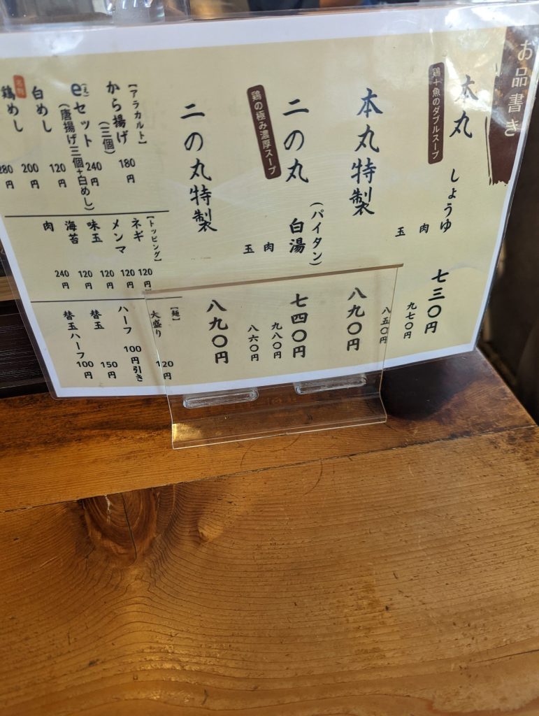 当時のおすすめはやっぱり本丸特製です。ザ王道といったラーメンをいただくことができます。
